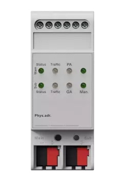 Akubela KNX KXLC-G1E1 je linkový vazební člen, páteřní vazební člen nebo opakovač linky a je vhodný jak pro nové instalace, tak pro stávající sítě KNX. Vestavěná tabulka filtrů řídí, zda jsou skupinové telegramy přeposílány nebo blokovány. Přenášejí se pouze telegramy uvedené ve filtrovací tabulce, což snižuje zbytečný provoz na sběrnici a zlepšuje výkon systému. Filtrační tabulku automaticky generuje ETS (Engineering Tool Software) během uvádění do provozu.