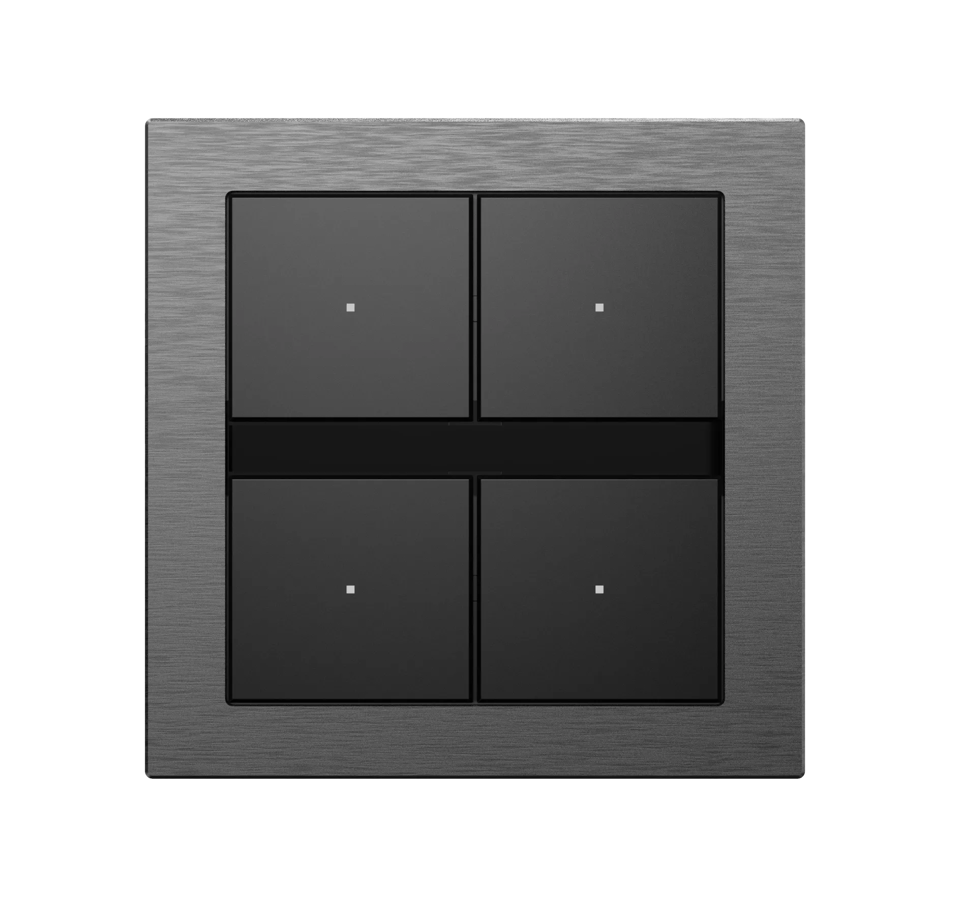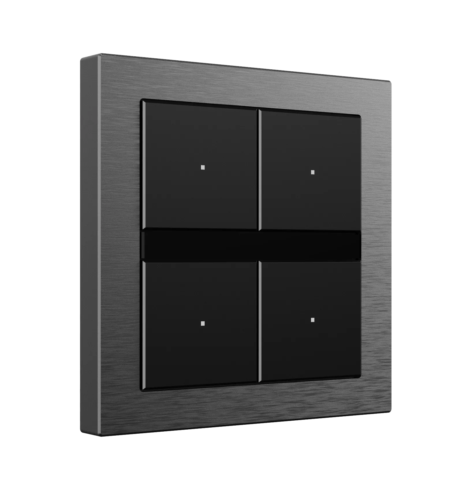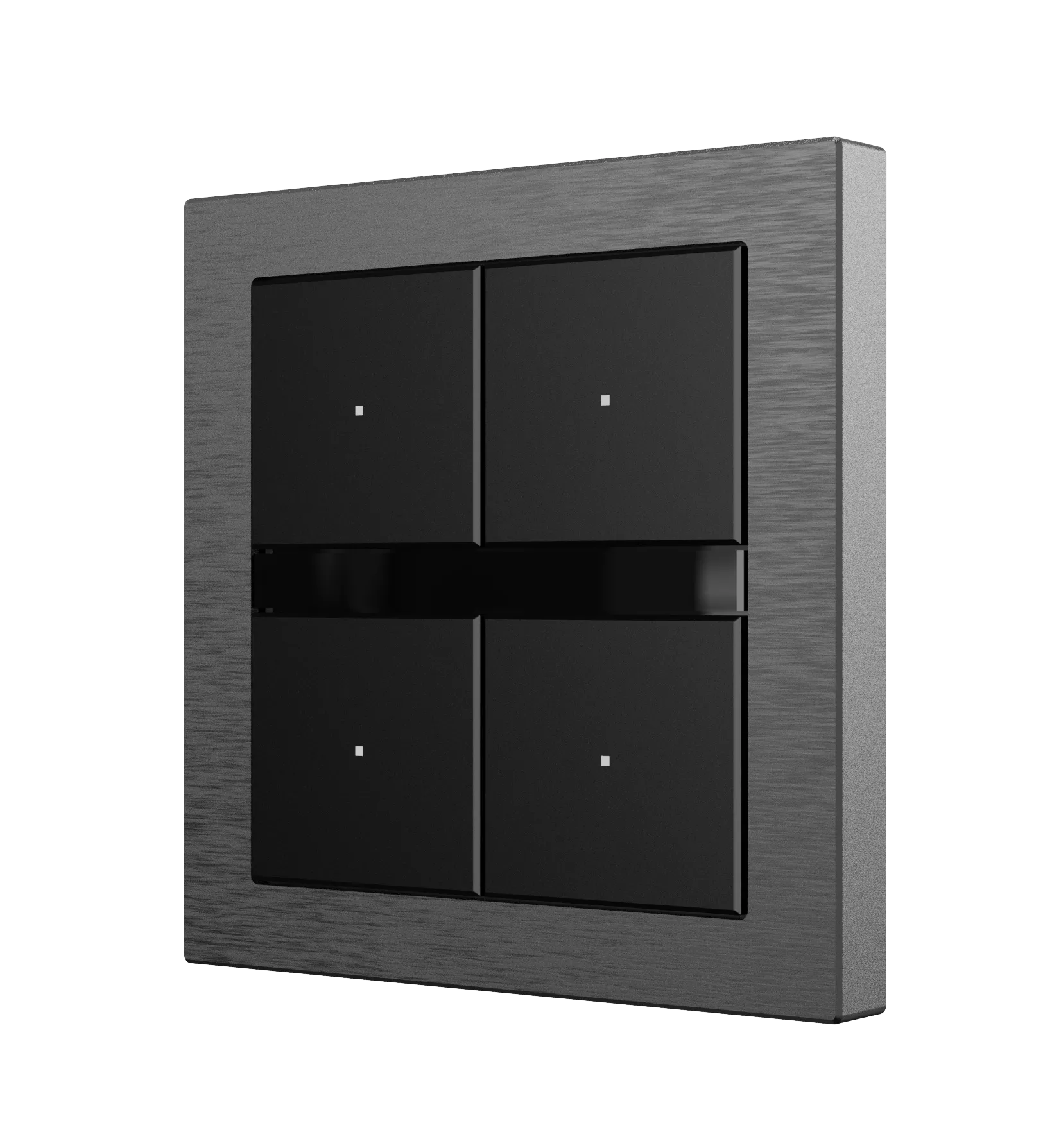 Smart panel Akubela HyPanel Lux s kovovým rotačním ovladačem podsvětleným až 16 mil. barvami, 2.1" dotykovým displejem a čtyřmi fyzickými skleněnými tlačítky. Disponuje také integrovanou Zigbee gatewají, WiFi, LAN, infra portem, ...