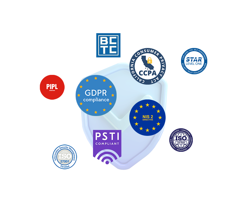 Všechny produkty disponují certifikací RED Security dle standardu EN18031:1:2024, EN18031:2:2024, EN18031:3:2024.