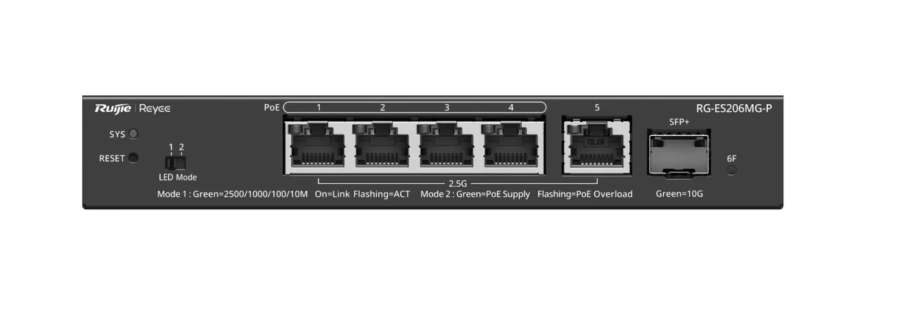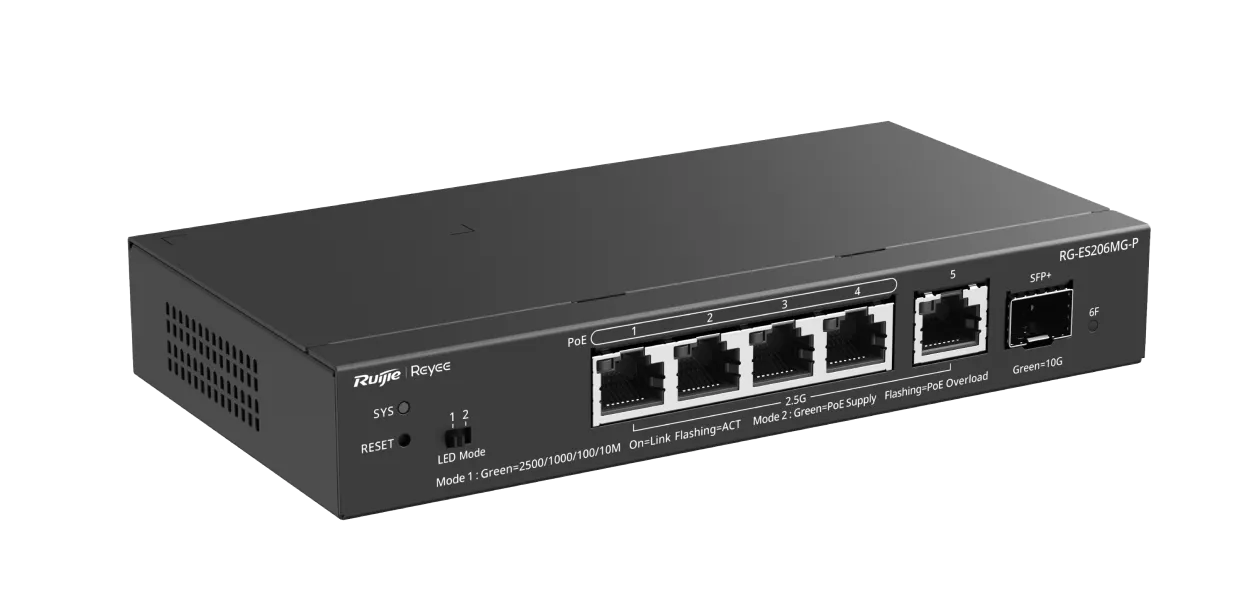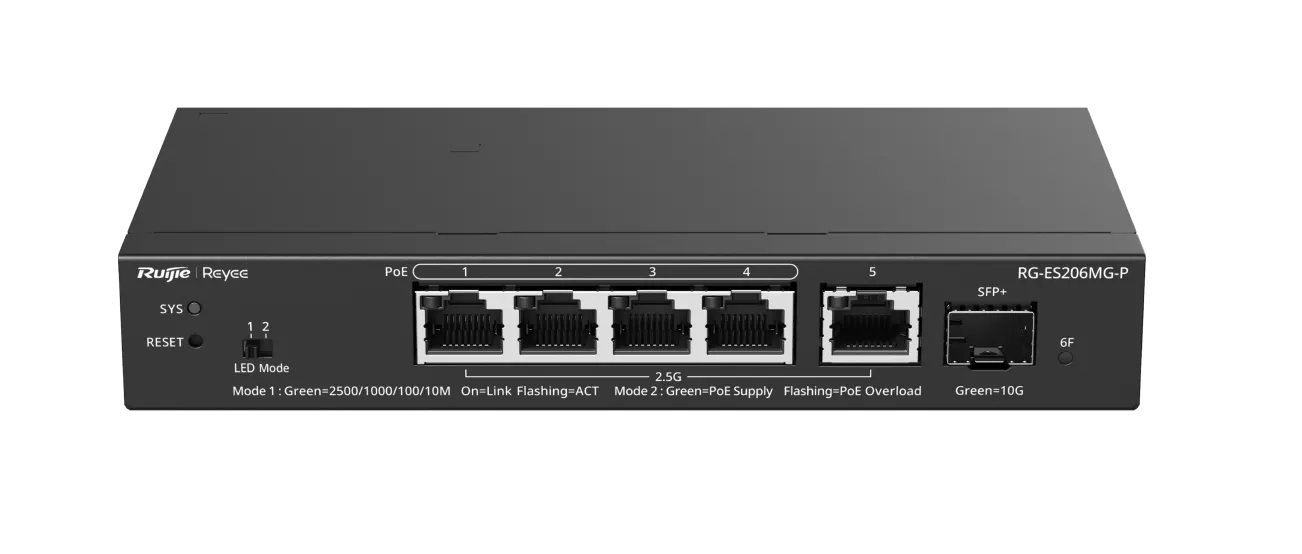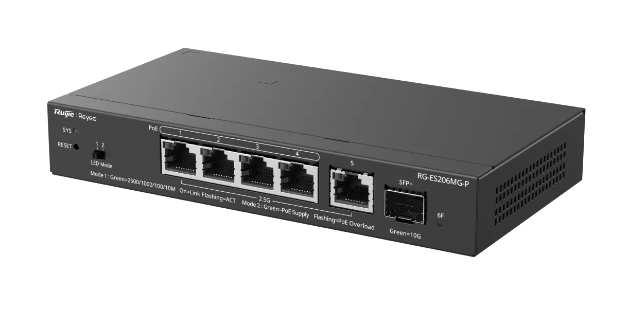 Reyee RG-ES206MG-P 5 portový 2.5G řízený switch PoE+ s SFP+ 10G portem pro SMB
