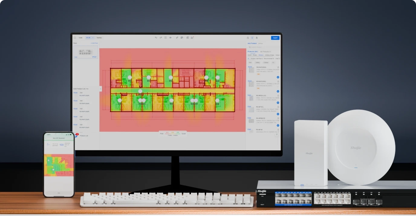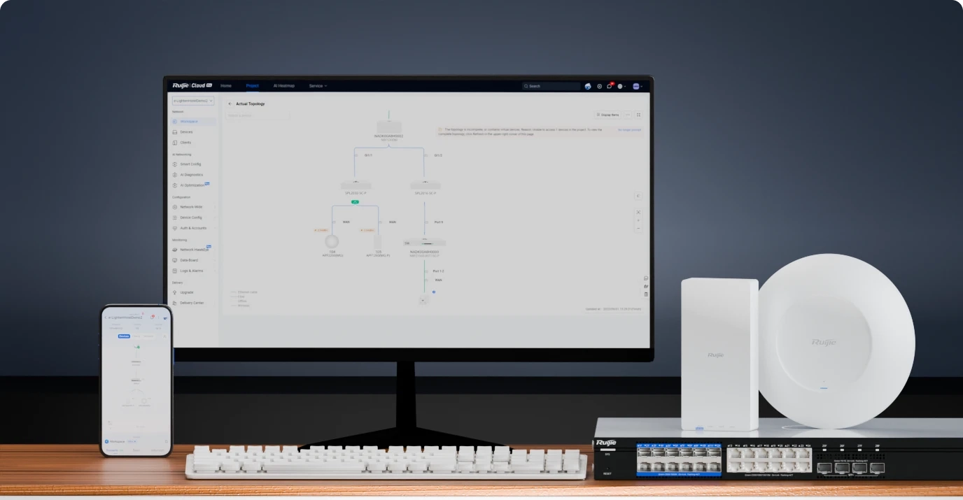 Ruijie Cloud je efektivní řešení pro obchodní řetězce, podniky všech velikosti, sklady, hotely i domácnosti. Řešení umožňuje rychlé nasazení a instalaci všech zařízení díky funkci plug and play, jejich on-line monitorování, optimalizací sítě a provozní řízení po celý životní cyklus. Mobilní aplikace pro iOS a Android podporuje přidání zařízení pomocí QR kódu, monitorování stavu sítě a alarmové notifikace.