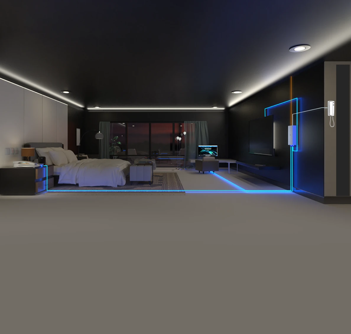 Díky jedinému optickému kabelu v pokoji podporuje e-Lighten AP RG-APF1250 klíčové služby (bezdrátová síť, kabelová síť, IPTV a telefon) v hotelových pokojích, čímž minimalizuje využití kabelů a náklady na kabeláž.