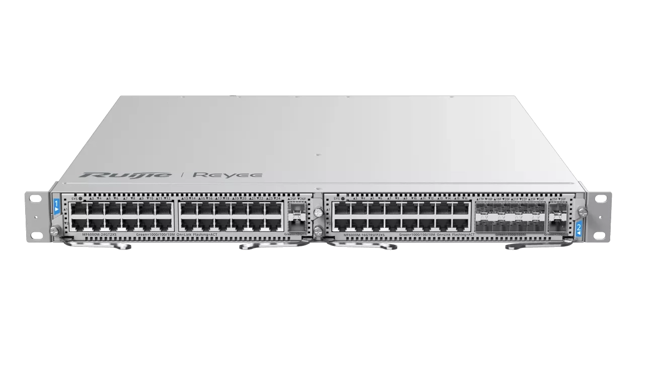 Ruijie e-Lighten modulární dvouslotový core ONU L3 switch RG-NBF6002M s porty OLT, 1G/10G nové generace s vysokým výkonem, redundancí a vysokým zabezpečením.