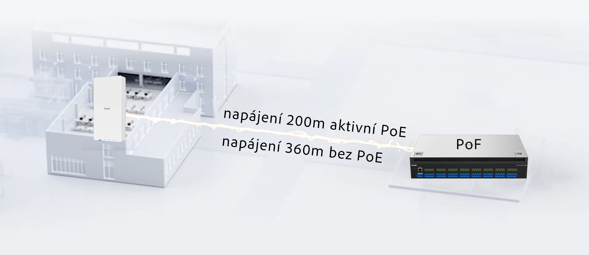 Hybridní optický kabel Ruijie RG-AWG05-2SM-305I pro připojení a napájení WiFi AP a switchů s PoF série e-Lighten.