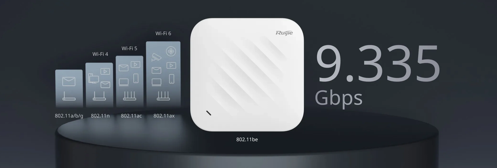 Ruijie RG-AP7136-R je vnitřní přístupový bod (AP) nové generace v souladu s Wi-Fi 7 (802.11be). Přístupový bod, navržený s osmi prostorovými toky, dosahuje špičkové datové rychlosti 9.335 Mbps. Podporuje napájení DC nebo PoE a dodává se s combo portem 1x 5GE/10GE SFP+ portem a 1x 5GE/10G BASE-T portem, 1x 1GBASE-T port pro flexibilní síťování a škálovatelnost.