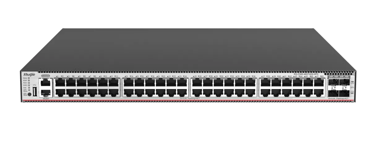 Ruijie RG-CS85-48GT4XS-D je next-gen switch nové generace, který nabízí výjímečný výkon a vylepšené zabezpečení. Díky implementaci špičkového hardware a nejnovějšího modulárního operačního systému Ruijie RGOS12.X nabízejí tyto přepínače lepší kapacitu, výkonější hardware a snadnější uživatelské ovládání. Správa pomocí Ruijie Cloud.